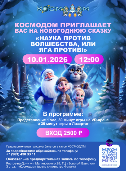 - 3 мини-аттракциона на выбор: Лазерный лабиринт, Лазерный тир, Космоденс, Космический баскетбол, Кнопочный бой